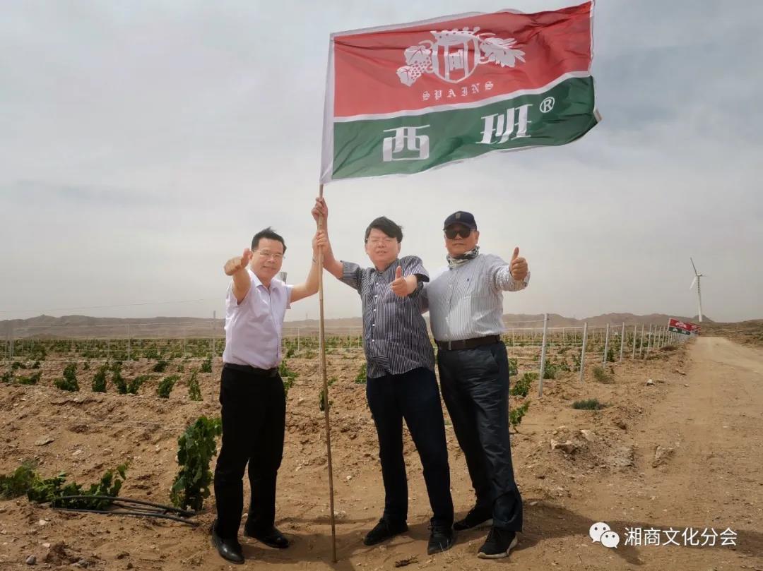 6月6日上午,伍繼延會長在寧夏湖南商會會長彭樹其、執(zhí)行會長陶志勇陪同下,專程驅(qū)車到青銅峽市葡萄酒產(chǎn)業(yè)園區(qū),聽取優(yōu)秀湘商金家瑞董事長介紹并考察他投資的寧夏青銅峽西班葡萄種植基地??吹竭@個占地5700畝的湘寧兩地政府對接精準扶貧的葡萄酒項目,規(guī)劃種植高標準釀酒葡萄園3200畝,現(xiàn)已完成1500畝種植,伍繼延會長一邊在大西北沙塵暴的狂風中撐起西班的旗幟,一邊感嘆在荒漠里開發(fā)建設非常不容易!